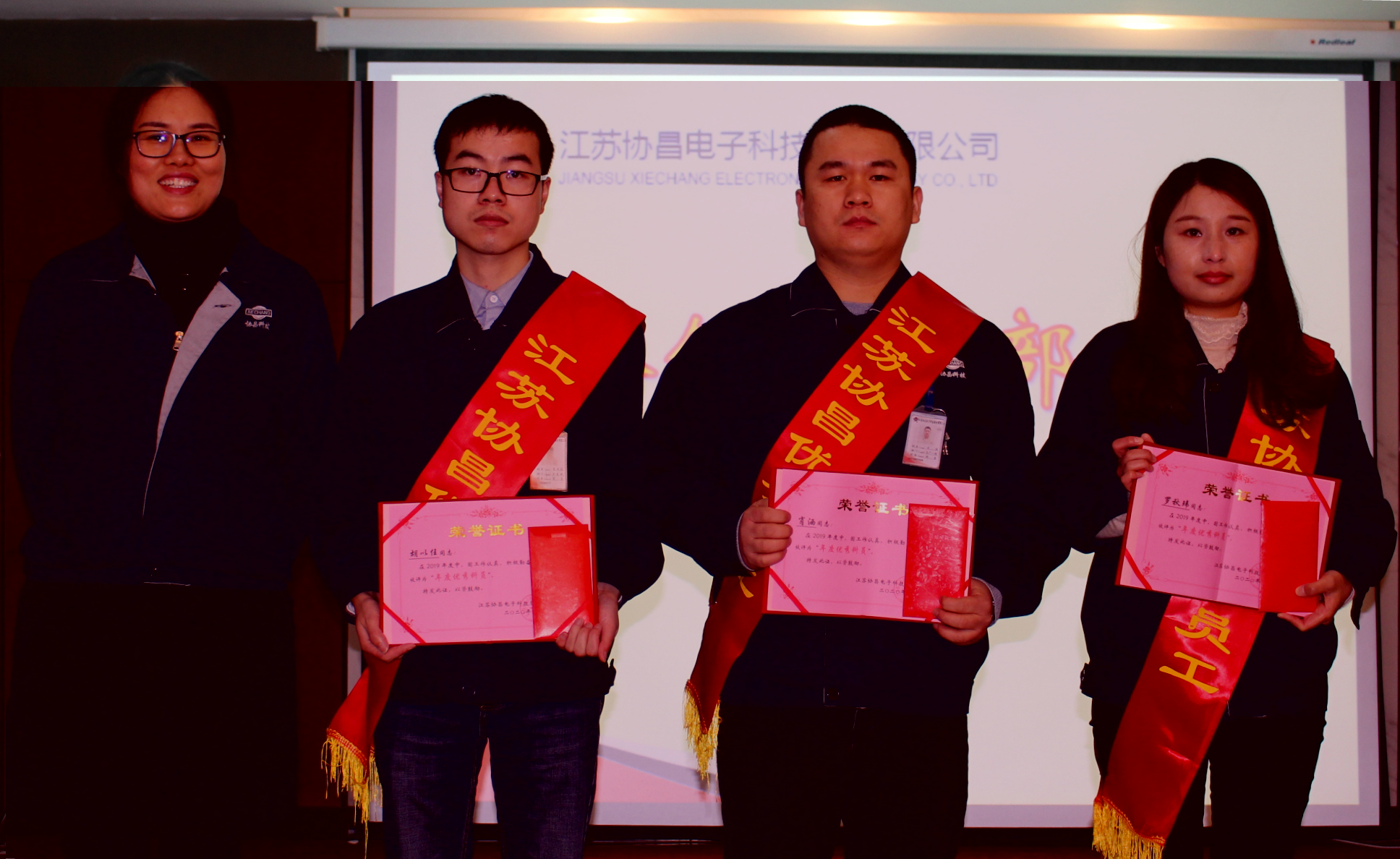 會(huì)議開始,隆重表彰了2019年度優(yōu)秀干部和優(yōu)秀員工。營(yíng)運(yùn)中心總監(jiān)蔡云波在宣讀表彰決定時(shí),代表公司要求受表彰的同志要戒驕戒躁、繼續(xù)努力、再創(chuàng)佳績(jī),希望全體員工向受表彰的先進(jìn)學(xué)習(xí),愛崗敬業(yè)、勇挑重?fù)?dān),為公司的發(fā)展做出更大更新的貢獻(xiàn)。公司營(yíng)銷中心總監(jiān)顧韌、財(cái)務(wù)兼制造中心總監(jiān)王紅梅、研發(fā)中心總監(jiān)張亮分別為“優(yōu)秀干部”、“優(yōu)秀科員”、“優(yōu)秀員工”頒獎(jiǎng)。