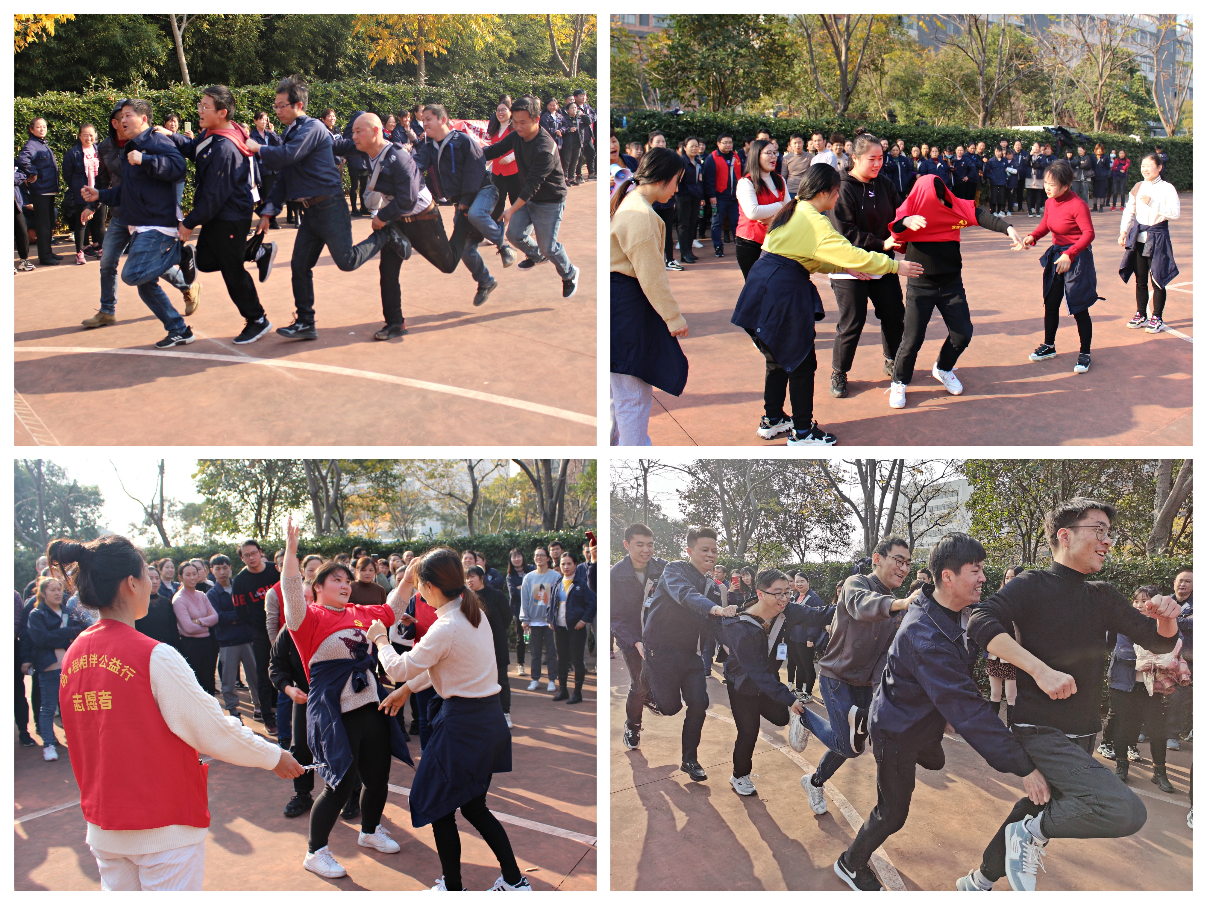 比賽正式開始啦!運動會共設置五個趣味團體賽項目,分別有:企鵝漫步學文化,旋風跑,單腿火車,套衣服接龍,拔河。每個比賽項目不僅鍛煉大家動手動腦的能力,更鍛煉大家在工作中能夠團結協(xié)作的精神,這不但是智慧和體力的角逐,還是團結和協(xié)作的比拼。